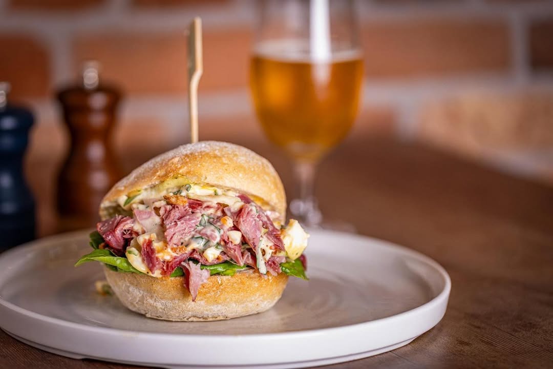 Why not try delicious pulled ham hock, hot honey, apple, watercress & egg mayo in a sourdough bun?